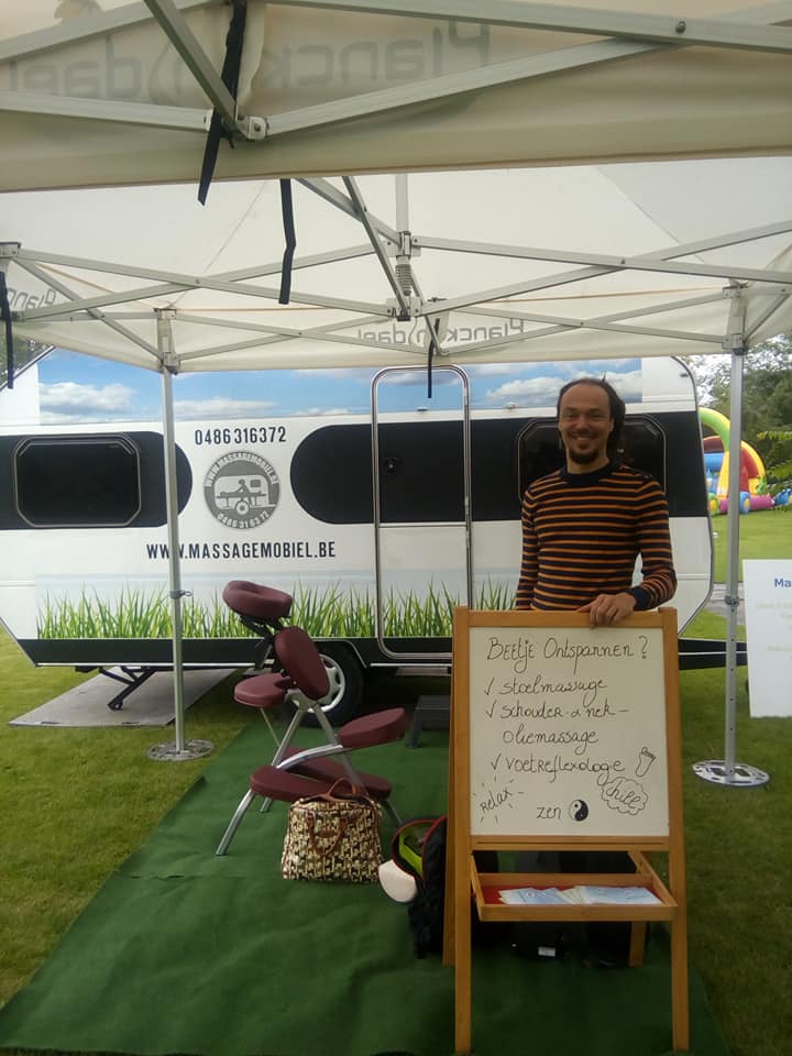Via mijn ervaring met Oosterse geneeswijzen en massagetechnieken breng ik al meer dan 15 jaar welzijn naar Belgische bedrijven. Wat begon als een avontuurlijke droom met een omgebouwde camper, is uitgegroeid tot een professionele service die bedrijven van elke grootte bedient.